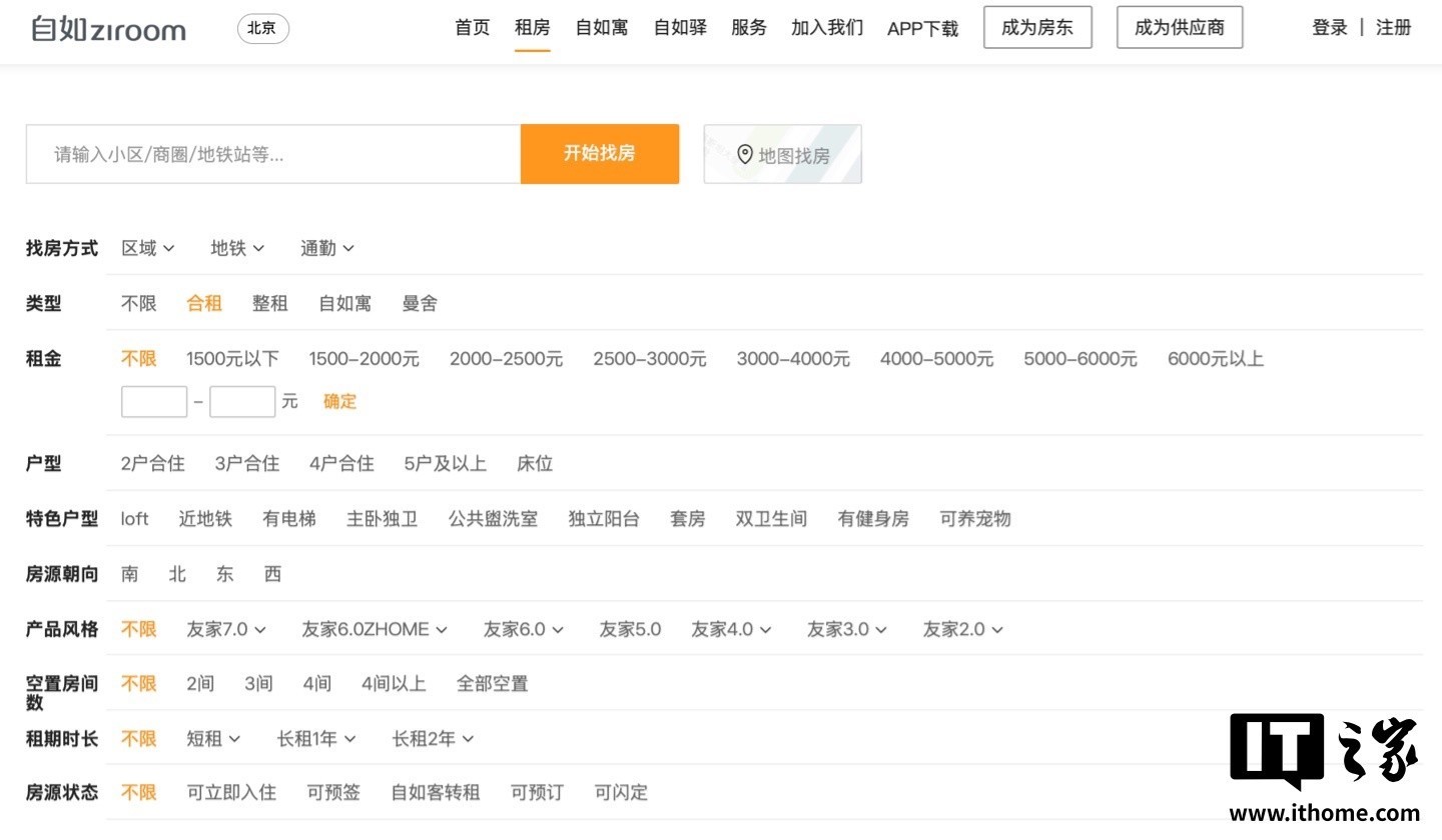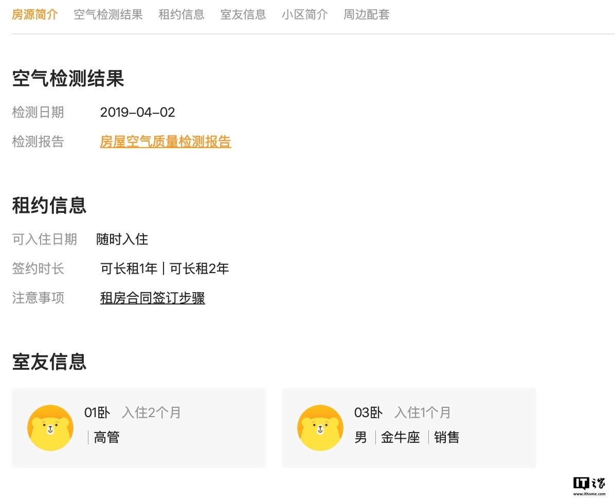 IT之家查询平台“合租”类型房屋,并未看到相应页面存在明显“年龄限制”提示。